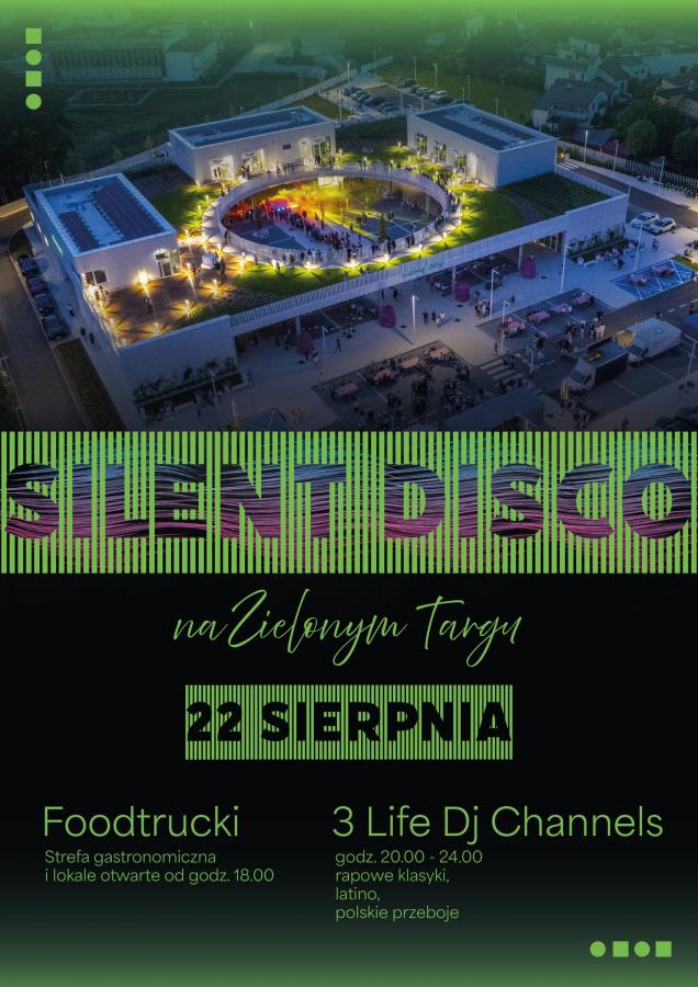 Zapraszamy na Silent Disco na Zielonym Targu w Ciechanowie! Już w piątek, 22 sierpnia, czeka nas druga edycja tego wydarzenia. Liczba słuchawek została zwiększona z 250 do 400, a na stoiskach foodtrucków będzie mnóstwo pysznego jedzenia. Impreza startuje o godz. 20.00 i potrwa do północy. Wstęp wolny! Dołączcie do nas i bawcie się przy hitach latino, polskich przebojach i klasyce rapu. Szczegóły na plakacie!