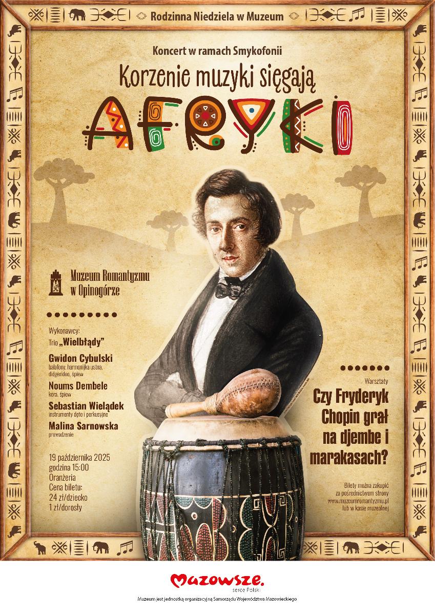 Zapraszamy na rodzinne niedziele - koncert Korzenie muzyki sięgają Afryki w wykonaniu Trio Wielbłądy oraz warsztaty kreatywne. Artystyczna podróż po kulturze afrykańskiej i aborygeńskiej poprowadzi nas do korzeni muzyki. Bilety dostępne online lub w kasie muzeum, a osoby z niepełnosprawnościami i ich opiekunowie mogą skorzystać z preferencyjnej ceny. Szczegóły na stronie muzeum. Zachęcamy do udziału!